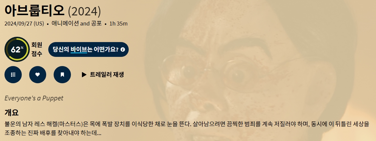 영화 아브룹티오 "목줄에 걸린 폭탄! 살아남기... HOT #아브룹티오 #목줄에 #걸린 아브룹티오 "목줄에 걸린 폭탄! 살아남기 위해 괴물이 되어야 하는 인형극 gg*** 2026.04.10 6,531 494 영화 다운로드 (2개 파일) 아브룹티오.mkv 1.8 GB 다운로드 아브룹티오.srt 다운로드 개인 소장 목적으로만 이용 가능합니다. 재배포·상업적 이용 금지. TAGS #아브룹티오 #목줄에 #걸린 #폭탄 #살아남기 추천 494 저장 공유 목록 관련 콘텐츠 영화 [비포 던] 서부전선 900일간의 전쟁 실화 마지막 전투의 새벽 4,949 영화 [주토피아 2] Zootopia 2. 2025 (완벽 자막, 초고화질) 4,970 영화 [데드풀과 울버린] Deadpool & Wolverine. 2024 (휴 잭맨, 라이... 3,956