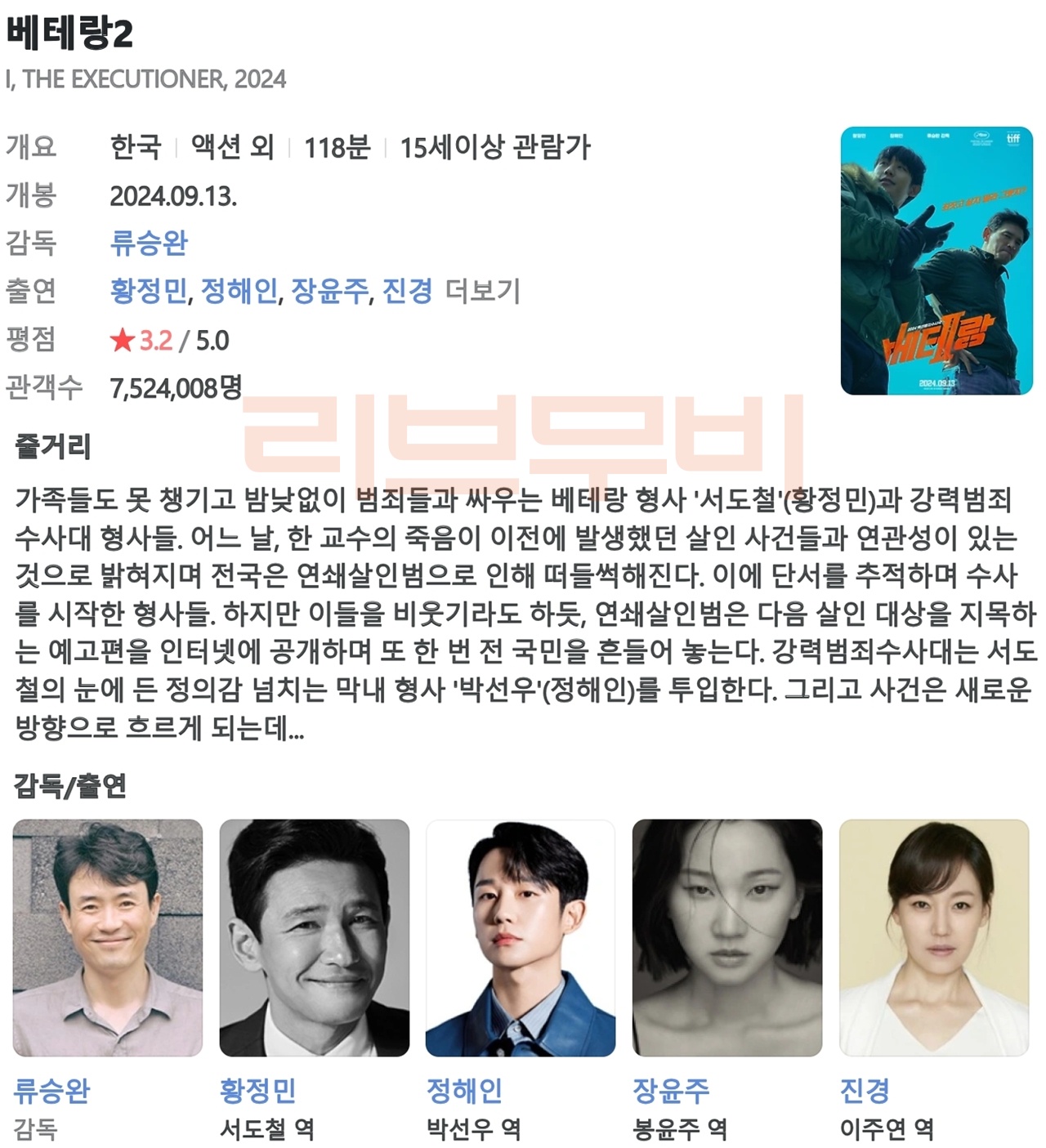 영화 【FHD】베테랑2 - 황정민 정해인 Veteran.2... HOT #베테랑2 #황정민 #정해인 【FHD】베테랑2 - 황정민 정해인 Veteran.2.2024.1080p.WEB-DL.AAC.2.0.H.264-AYA li*** 2026.04.11 6,237 409 영화 다운로드 (1개 파일) Veteran.2.2024.1080p.WEB-DL.AAC.2.0.H.264-AYA.mkv 7.3 GB 다운로드 개인 소장 목적으로만 이용 가능합니다. 재배포·상업적 이용 금지. TAGS #베테랑2 #황정민 #정해인 #Veteran #AYA 추천 409 저장 공유 목록 관련 콘텐츠 영화 [비포 던] 서부전선 900일간의 전쟁 실화 마지막 전투의 새벽 4,951 영화 [주토피아 2] Zootopia 2. 2025 (완벽 자막, 초고화질) 4,972 영화 [데드풀과 울버린] Deadpool & Wolverine. 2024 (휴 잭맨, 라이... 3,958
