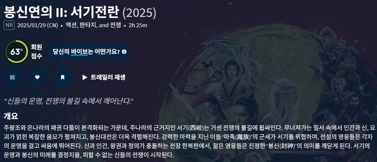 영화 봉신연의 II: 서기전란 (2025) "신들의 운... HOT #봉신연의 #서기전란 #신들의 봉신연의 II: 서기전란 (2025) "신들의 운명, 전쟁의 불길 속에서 깨어난다." gg*** 2026.04.11 6,305 326 영화 다운로드 (1개 파일) 봉신연의 II- 서기전란.mkv 3.1 GB 다운로드 개인 소장 목적으로만 이용 가능합니다. 재배포·상업적 이용 금지. TAGS #봉신연의 #서기전란 #신들의 #운명 #전쟁의 추천 326 저장 공유 목록 관련 콘텐츠 영화 [비포 던] 서부전선 900일간의 전쟁 실화 마지막 전투의 새벽 4,951 영화 [주토피아 2] Zootopia 2. 2025 (완벽 자막, 초고화질) 4,972 영화 [데드풀과 울버린] Deadpool & Wolverine. 2024 (휴 잭맨, 라이... 3,958