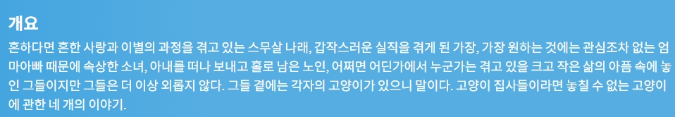 영화 나만 없어 고양이 “힘들 때 곁에 있어준 건... HOT #나만 #없어 #고양이 나만 없어 고양이 “힘들 때 곁에 있어준 건 사람보다 고양이였다” gg*** 2026.04.29 5,456 304 영화 다운로드 (1개 파일) 나만 없어 고양이.mkv 1.8 GB 다운로드 개인 소장 목적으로만 이용 가능합니다. 재배포·상업적 이용 금지. TAGS #나만 #없어 #고양이 #“힘들 #곁에 추천 304 저장 공유 목록 관련 콘텐츠 영화 [비포 던] 서부전선 900일간의 전쟁 실화 마지막 전투의 새벽 4,946 영화 [주토피아 2] Zootopia 2. 2025 (완벽 자막, 초고화질) 4,967 영화 [데드풀과 울버린] Deadpool & Wolverine. 2024 (휴 잭맨, 라이... 3,953