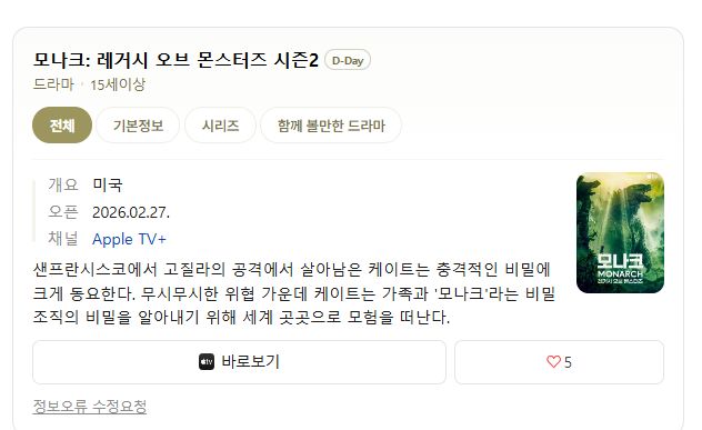 드라마 [3월 신작] 모나크 레거시 오브 몬스터즈... #3월 #신작 #모나크 [3월 신작] 모나크 레거시 오브 몬스터즈 시즌2 (07화) 모음 한글자막 1080p 도리*** 2026.04.11 4,835 358 드라마 다운로드 (2개 파일) Monarch.Legacy.of.Monsters.S02E07.1080p.WEB.h264-ETHEL.mkv 4.2 GB 다운로드 Monarch.Legacy.of.Monsters.S02E07.1080p.WEB.h264-ETHEL.srt 다운로드 개인 소장 목적으로만 이용 가능합니다. 재배포·상업적 이용 금지. TAGS #3월 #신작 #모나크 #레거시 #오브 추천 358 저장 공유 목록 관련 콘텐츠 드라마 모두가 자신의 무가치함과 싸우고 있다.E03.260425.720p.H264-F1... 5,247 드라마 모두가 자신의 무가치함과 싸우고 있다.E04.260426.720p.H264-F1... 6,045 드라마 모두가 자신의 무가치함과 싸우고 있다.E04.260426.1080p-NEXT 3,556