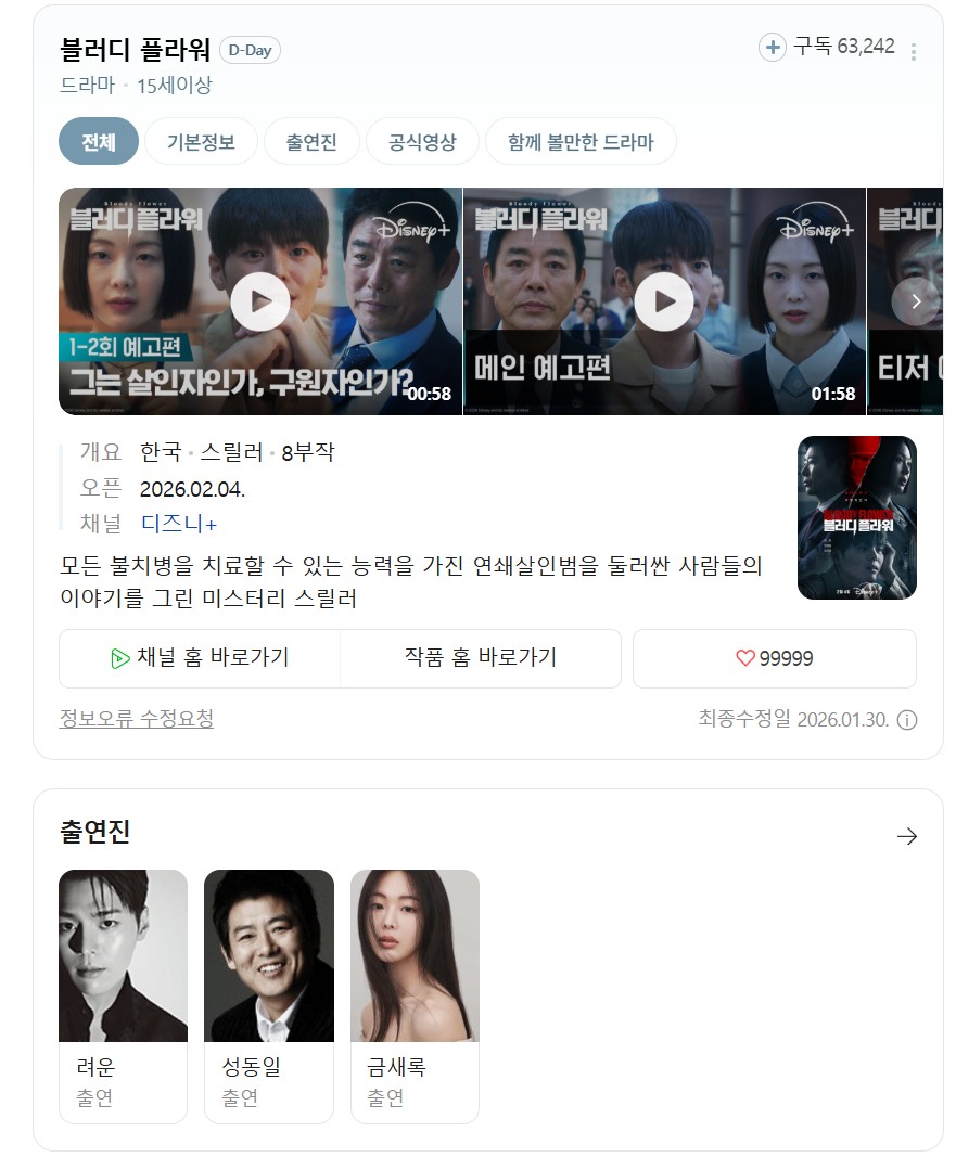 드라마 불치병 살인마.05~06화(려운,성동일).1080p... #불치병 #살인마0506화려운성동일1080pDSNPWEB #DL 불치병 살인마.05~06화(려운,성동일).1080p.DSNP.WEB-DL-MrHulk 켓츠*** 2026.01.01 4,171 667 드라마 다운로드 (2개 파일) Bloody.Flower.S01E05.1080p.DSNP.WEB-DL.AAC2.0.H.264-MrHulk [DRAMADAY.me].mkv 3.0 GB 다운로드 Bloody.Flower.S01E06.1080p.DSNP.WEB-DL.AAC2.0.H.264-MrHulk [DRAMADAY.me].mkv 다운로드 개인 소장 목적으로만 이용 가능합니다. 재배포·상업적 이용 금지. TAGS #불치병 #살인마0506화려운성동일1080pDSNPWEB #DL #MrHulk 추천 667 저장 공유 목록 관련 콘텐츠 드라마 은밀한 감사.E01.260425.1080p.H264-F1RST 4,546 드라마 [SBS] 신이랑 법률사무소 (유연석,이솜).E14.260425.1080p.H264-... 6,526 드라마 [SBS] 신이랑 법률사무소 (유연석,이솜).E14.260425.720p.H264-F... 4,633