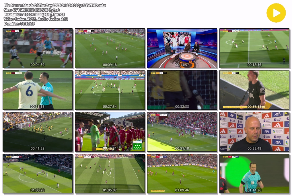 동영상 [핖.EPL] 26.04.26 M.O.T.D [1080P.FHD] HOT #EPL #FHD #Match [핖.EPL] 26.04.26 M.O.T.D [1080P.FHD] MJ*** 2026.04.28 7,602 287 동영상 다운로드 (1개 파일) Match.Of.The.Day.2026.04.26.1080p.NSWFHD.mkv 4.7 GB 다운로드 개인 소장 목적으로만 이용 가능합니다. 재배포·상업적 이용 금지. TAGS #EPL #FHD #Match #Of #The 추천 287 저장 공유 목록 관련 콘텐츠 동영상 조선의 사랑꾼.E119.260427.450p-NEXT 4,820 동영상 조선의 사랑꾼.E119.260427.720p-NEXT 3,618 동영상 조선의 사랑꾼.E119.260427.1080p-NEXT 6,321