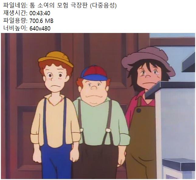 애니 톰 소여의 모험 극장판 (다중음성)01-02 HOT #소여의 #모험 #극장판 톰 소여의 모험 극장판 (다중음성)01-02 남미*** 2026.04.28 5,054 284 애니 다운로드 (4개 파일) 톰 소여의 모험 극장판 - 01 [다중음성 DVDRip 640x480].smi 1.4 GB 다운로드 톰 소여의 모험 극장판 - 01 [다중음성 DVDRip 640x480].avi 다운로드 톰 소여의 모험 극장판 - 02 [다중음성 DVDRip 640x480].smi 다운로드 톰 소여의 모험 극장판 - 02 [다중음성 DVDRip 640x480].avi 다운로드 개인 소장 목적으로만 이용 가능합니다. 재배포·상업적 이용 금지. TAGS #소여의 #모험 #극장판 #다중음성 #DVDRip 추천 284 저장 공유 목록 관련 콘텐츠 애니 [SubsPlease] 원피스 - 1159 (1920x1080) 5,406 애니 보루토 121~160화[자체자막] 4,517 애니 보루토 161~200화[자체자막] 7,692